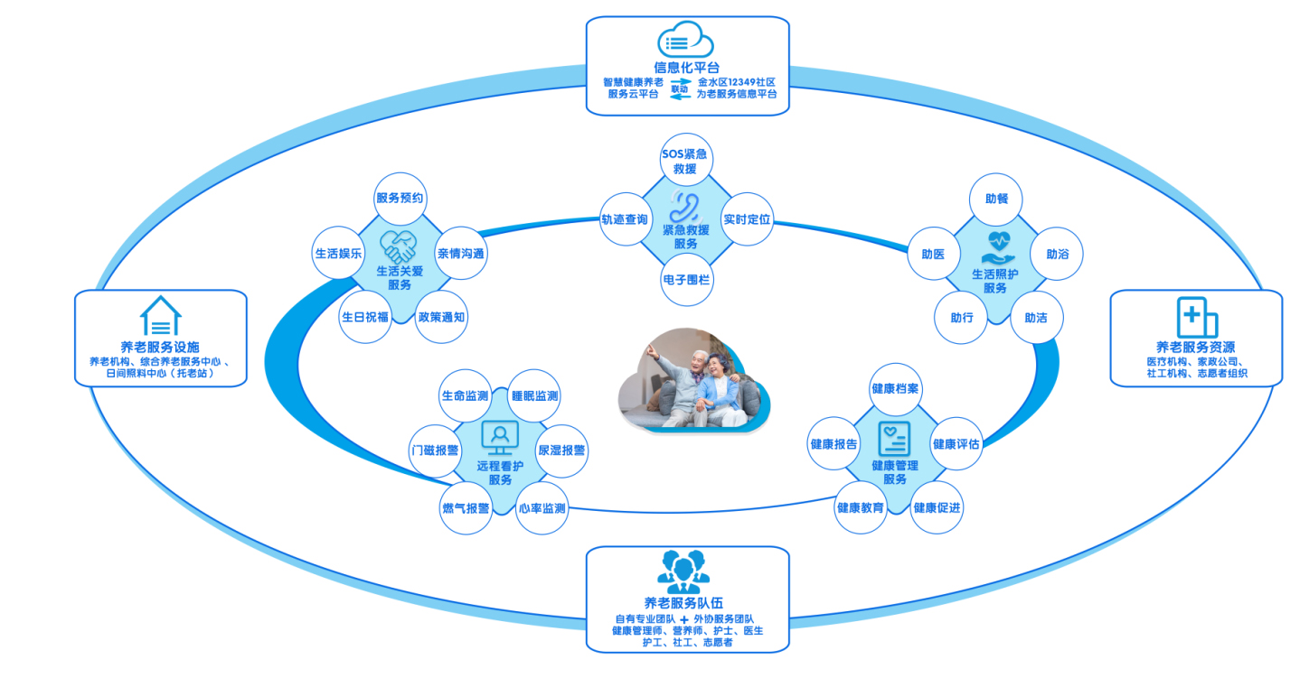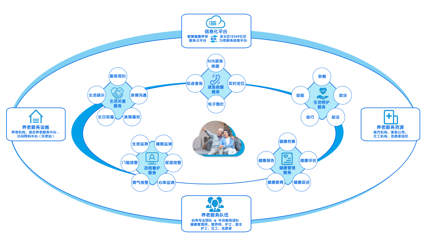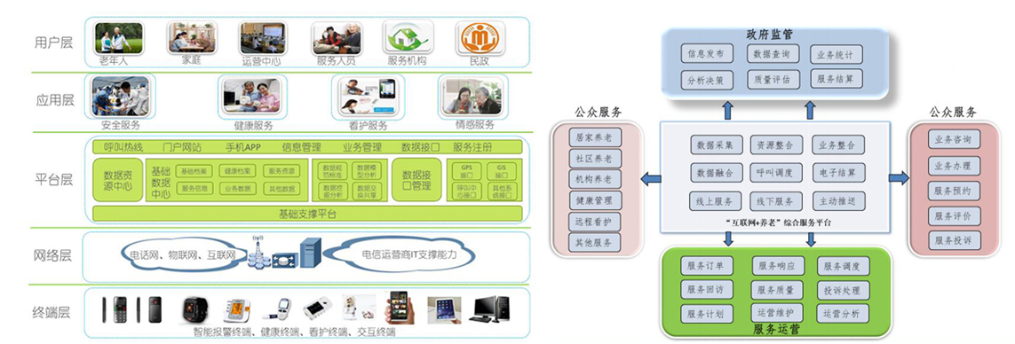大象通信將"民政養(yǎng)老業(yè)務(wù)綜合監(jiān)管平臺"、"智能養(yǎng)老應(yīng)用平臺"集成到一起,面向"全國居家和社區(qū)養(yǎng)老改革試點城市"以及其他政府主要領(lǐng)導(dǎo)重視養(yǎng)老工作的城市,貼近當(dāng)?shù)氐酿B(yǎng)老現(xiàn)狀、業(yè)務(wù)需求、管理需要進(jìn)行定制開發(fā),形成具有當(dāng)?shù)靥厣?互聯(lián)網(wǎng)+養(yǎng)老"綜合服務(wù)平臺,構(gòu)建因地制宜的智能養(yǎng)老應(yīng)用體系,發(fā)展"互聯(lián)網(wǎng)+養(yǎng)老"新業(yè)態(tài)、新模式,助力養(yǎng)老服務(wù)高質(zhì)量發(fā)展、高水平監(jiān)管。 "互聯(lián)網(wǎng)+養(yǎng)老"綜合服務(wù)平臺架構(gòu) "互聯(lián)網(wǎng)+養(yǎng)老"綜合服務(wù)平臺功能視圖 |