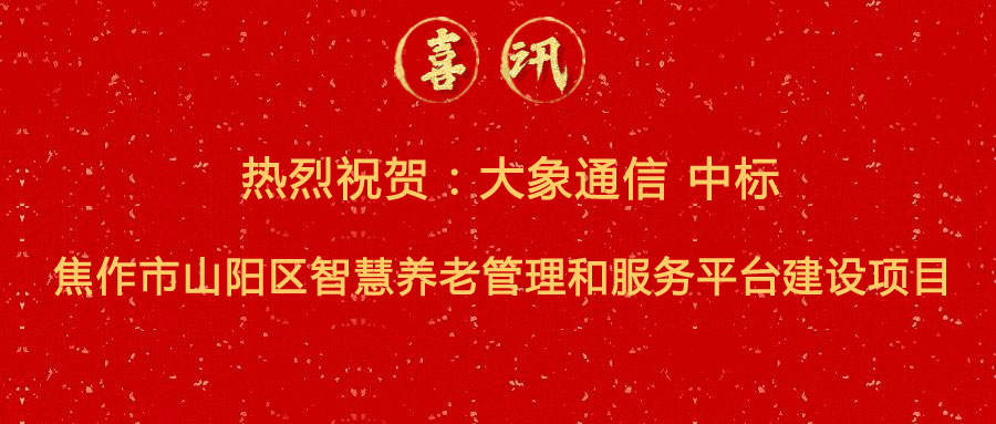 中標(biāo)喜訊 | 熱烈祝賀大象通信中標(biāo)焦作市山陽區(qū)智慧養(yǎng)老管理和服務(wù)平臺(tái)建設(shè)項(xiàng)目